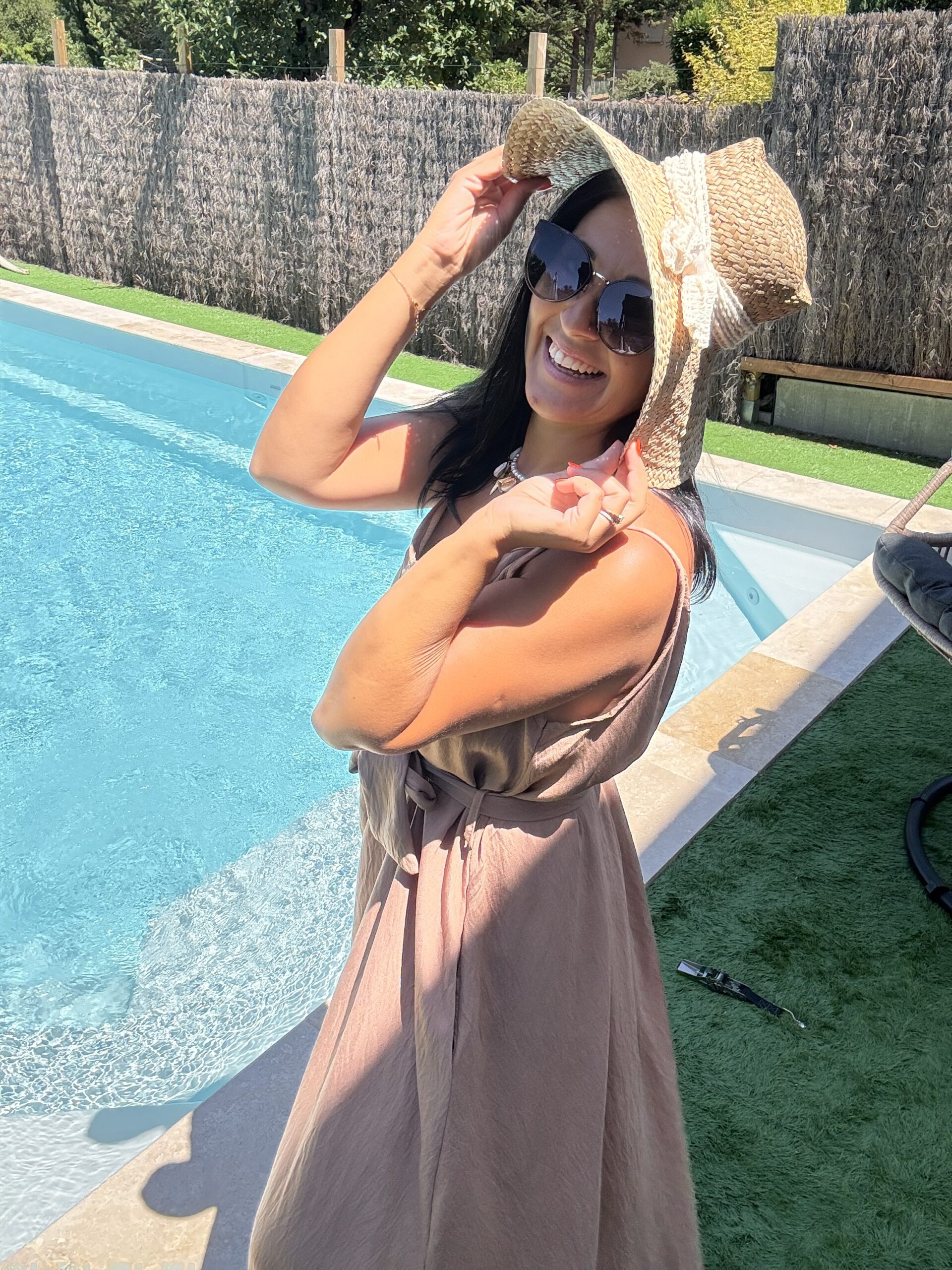À porter pieds nus à la plage ou avec des sandales dorées pour une touche chic.
